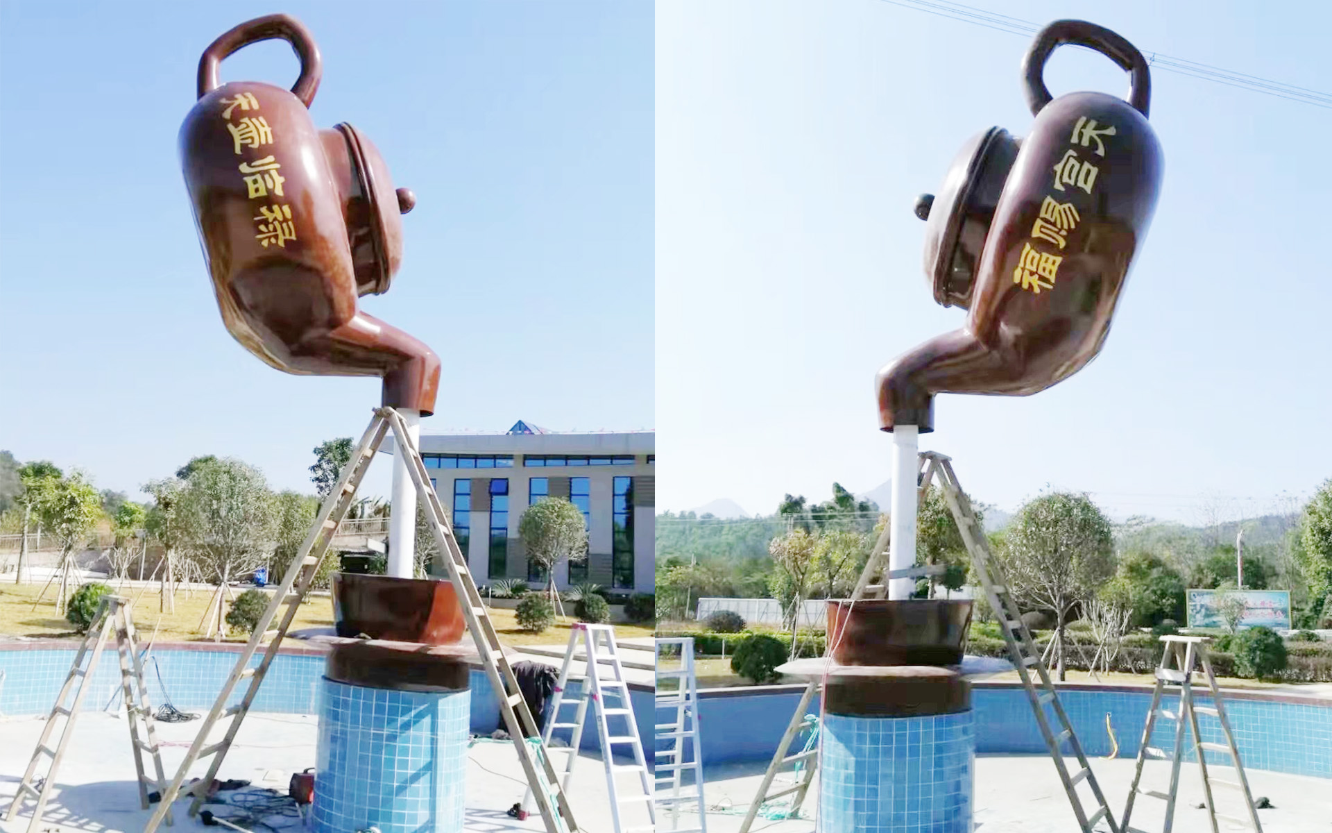 我公司可以加工玻璃鋼天壺雕塑,景觀(guān)天壺雕塑,水景天壺雕塑,城市天壺雕塑,公園天壺雕塑,廣場(chǎng)天壺雕塑,小區(qū)天壺雕塑,懸空流水壺雕塑,懸空天壺雕塑,懸空景觀(guān)壺雕塑,懸空茶壺茶杯雕塑,紫銅流水壺雕塑,紫銅鍛造懸空壺雕塑,紫銅天壺圖片,紫銅天壺案例,各種金屬懸空天壺制作。有需要制作天壺可以隨時(shí)聯(lián)系我公司。   新樂(lè)市玻璃鋼流水天壺雕塑制作安裝,天壺,懸空壺,景觀(guān)壺,流水壺,阿城懸空流水天壺雕塑不同尋常的吸引力 水景景觀(guān)設(shè)計(jì)玻璃鋼茶壺流水模型雕塑的營(yíng)造方法 玻璃鋼茶壺流水造型雕塑讓景觀(guān)動(dòng)起來(lái),在園林景觀(guān)有一個(gè)仿真大茶壺天壺造型雕塑,可以流水造型茶壺雕像,水景玻璃鋼茶杯杯子模型造型塑像。玻璃鋼茶壺噴泉造型景觀(guān)小品。應(yīng)用自然地形的斷巖峭壁、臺(tái)地陡坡或人工構(gòu)筑的假面山構(gòu)成陡崖梯級(jí),形成水流層次跌落,構(gòu)成瀑布或疊水等景觀(guān)。跌水終的外形和形式都由所流經(jīng)的物體決議,落水的速度和角度,也是影響瀑布方式和聲響效果的決議要素。在園林設(shè)計(jì)中,跌水的方式極端豐厚,也是能表現(xiàn)設(shè)計(jì)者或園林主人想象力及藝術(shù)檔次的設(shè)計(jì)元素之一?! ∫粋€(gè)容積達(dá)上百立方米的大茶壺,巍巍屹立在空中,茶壺嘴流淌出直徑大于50厘米的水柱引起不少游客駐足關(guān)注,大家甚感“奇怪”——茶壺何以能高高懸在空中?   這茶壺設(shè)計(jì)得昨一看真像是在空中懸著似的空中茶壺”是當(dāng)?shù)靥刂频囊环N藝術(shù)標(biāo)致,是茶壺旁一家大型茶樓在開(kāi)業(yè)之前,請(qǐng)***人士精心打造的藝術(shù)體。